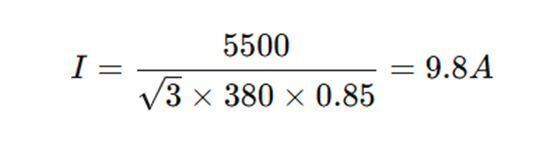 Một motor 3 pha công suất 5,5 kW, điện áp 380V, hệ số cosφ = 0.85